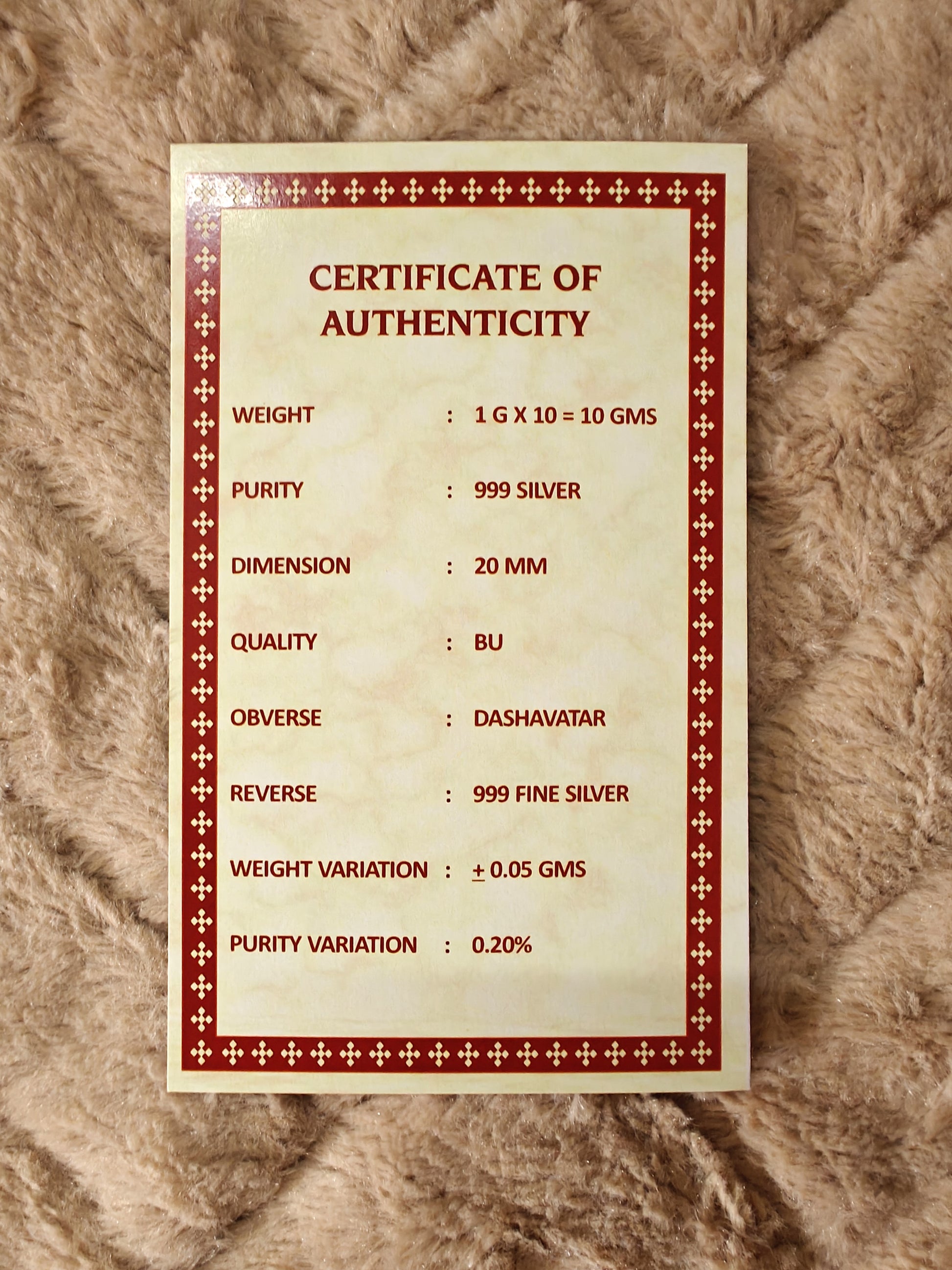 Experience divine craftsmanship with the Dashavatar Coin Set, featuring all ten incarnations of Lord Vishnu. Crafted from 999 purity silver, each coin in this set represents a sacred avatar with intricate detail, reflecting spiritual significance and artistic precision. This collection is ideal for devotees and collectors alike, offering both religious value and a timeless keepsake forged in pure silver.